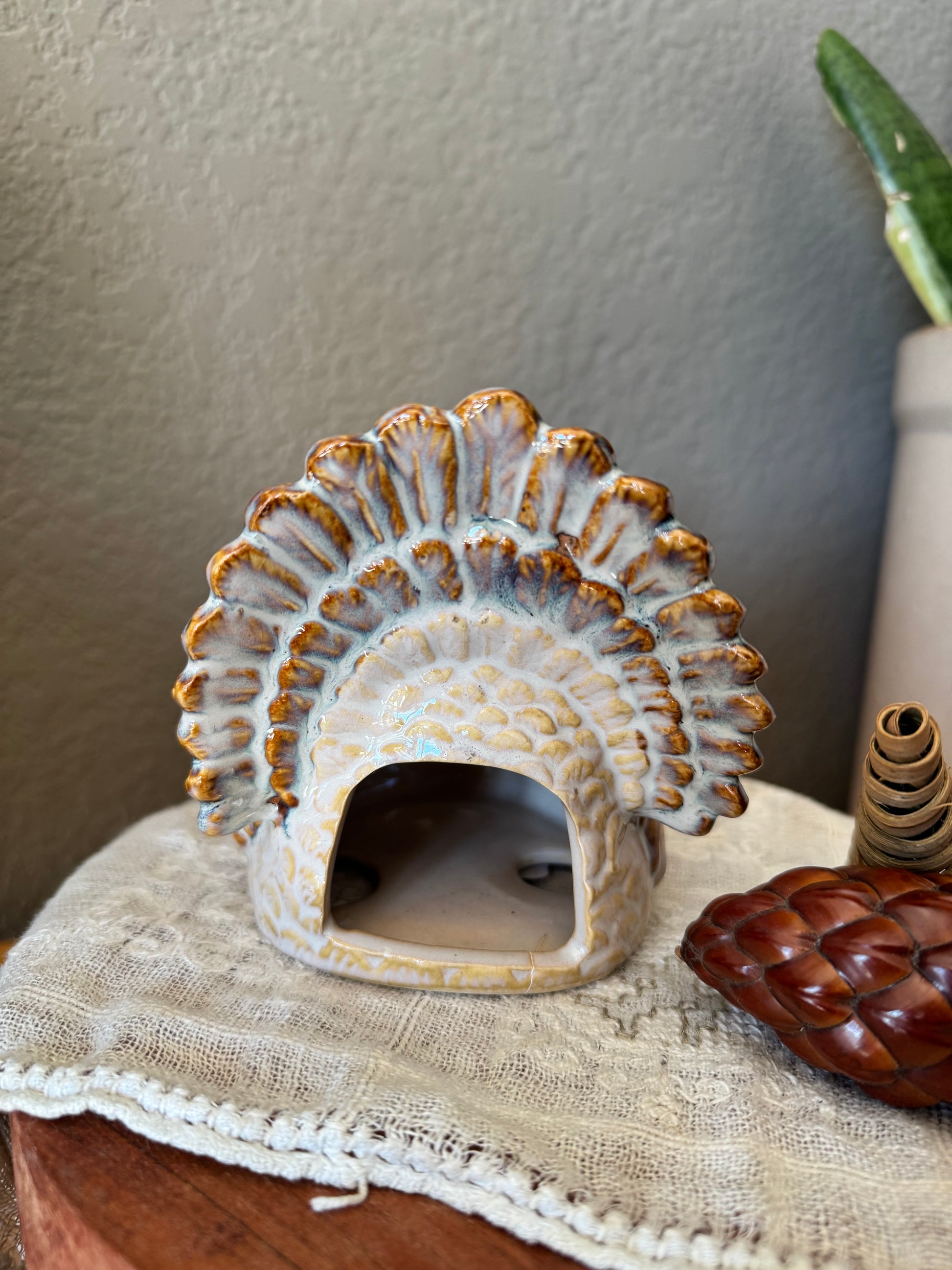 Glazed Stoneware Turkey Tea-Light Candle Holder
